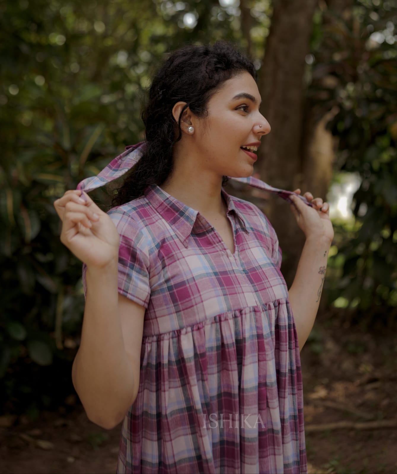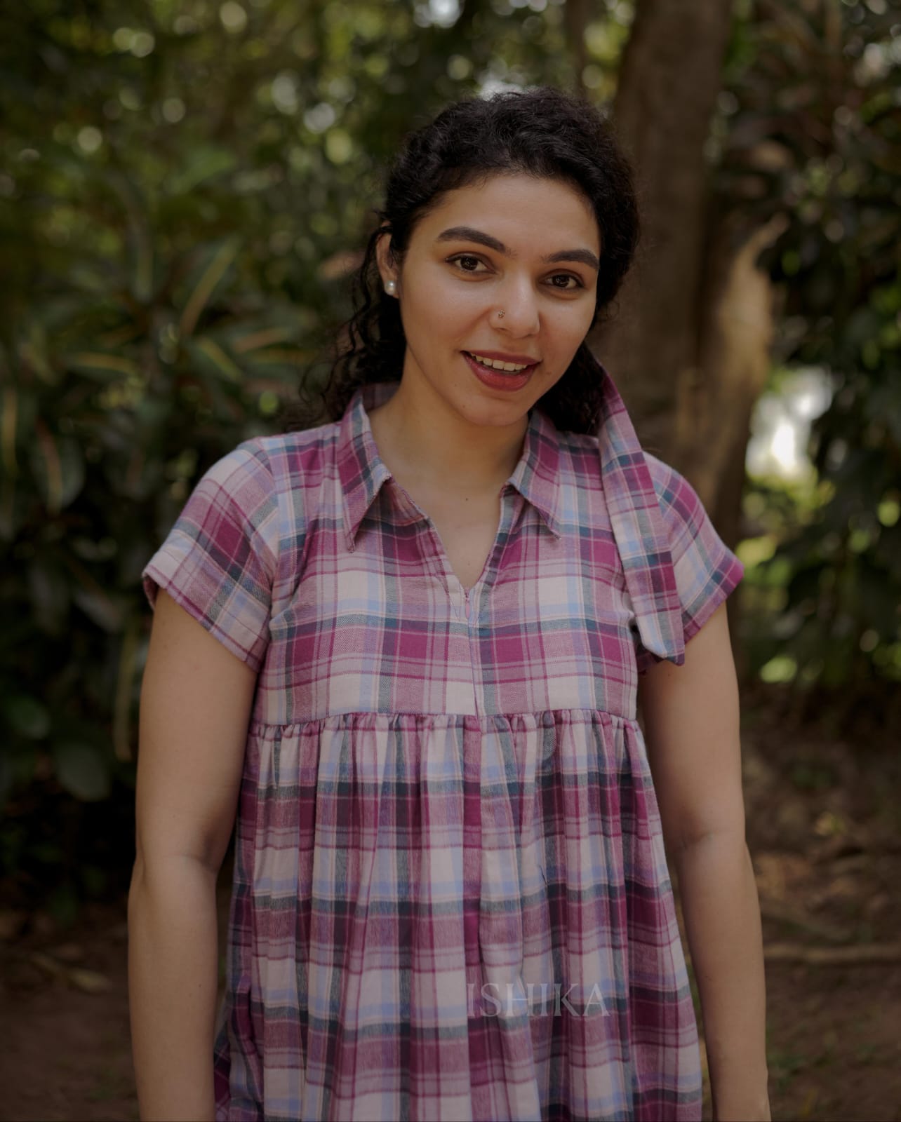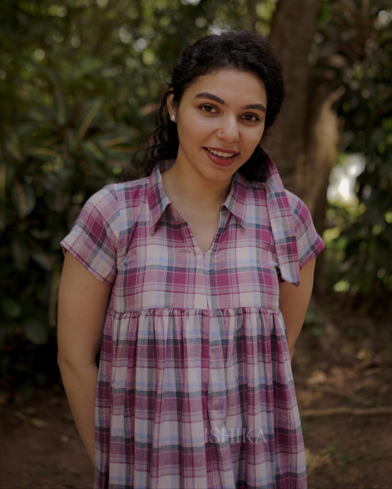 Color:- Plum and light pink with hints of dark greyish blue and soft blue