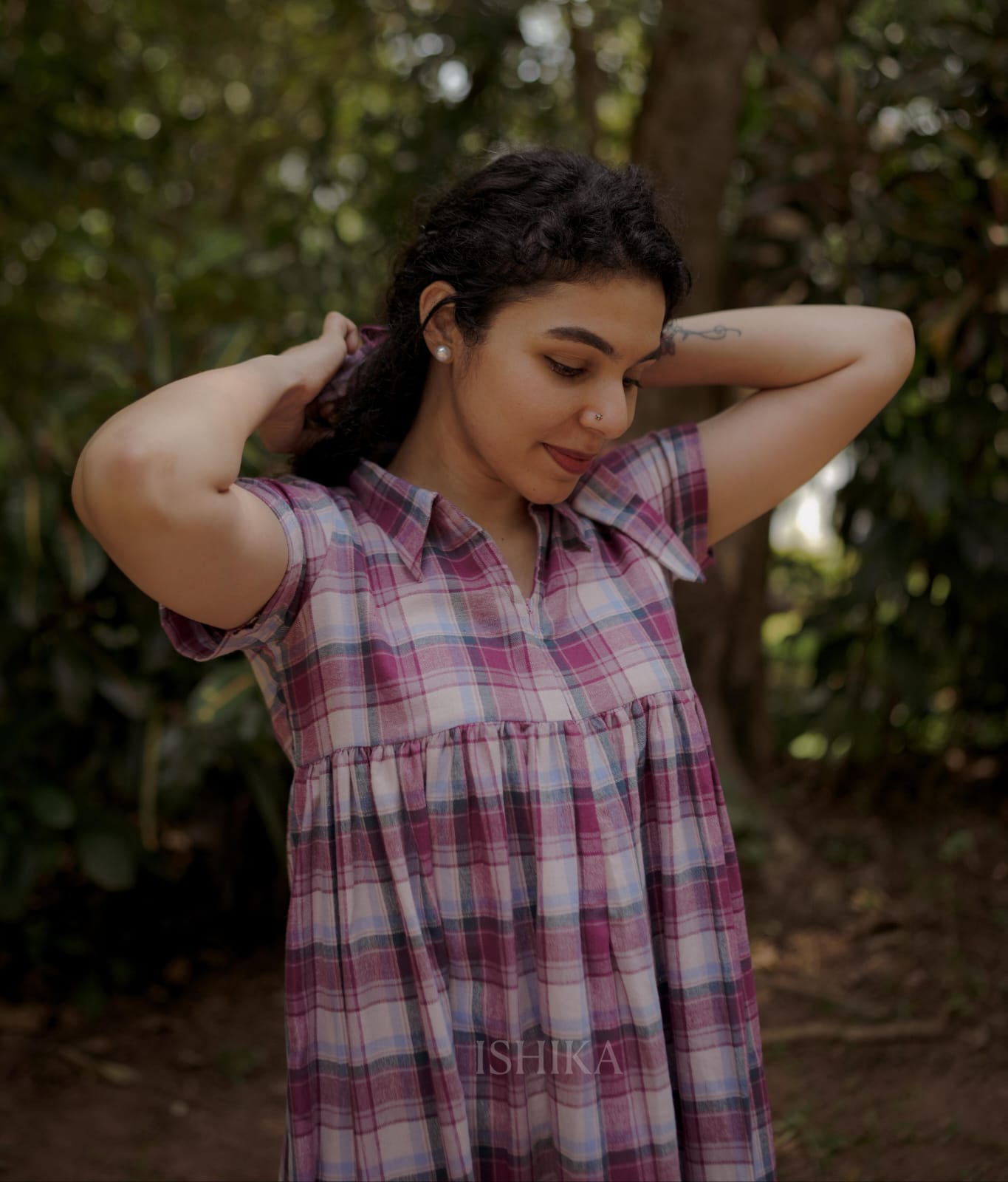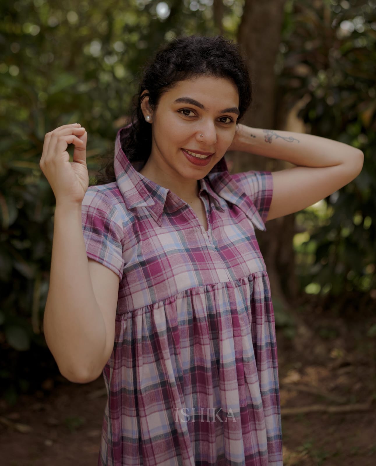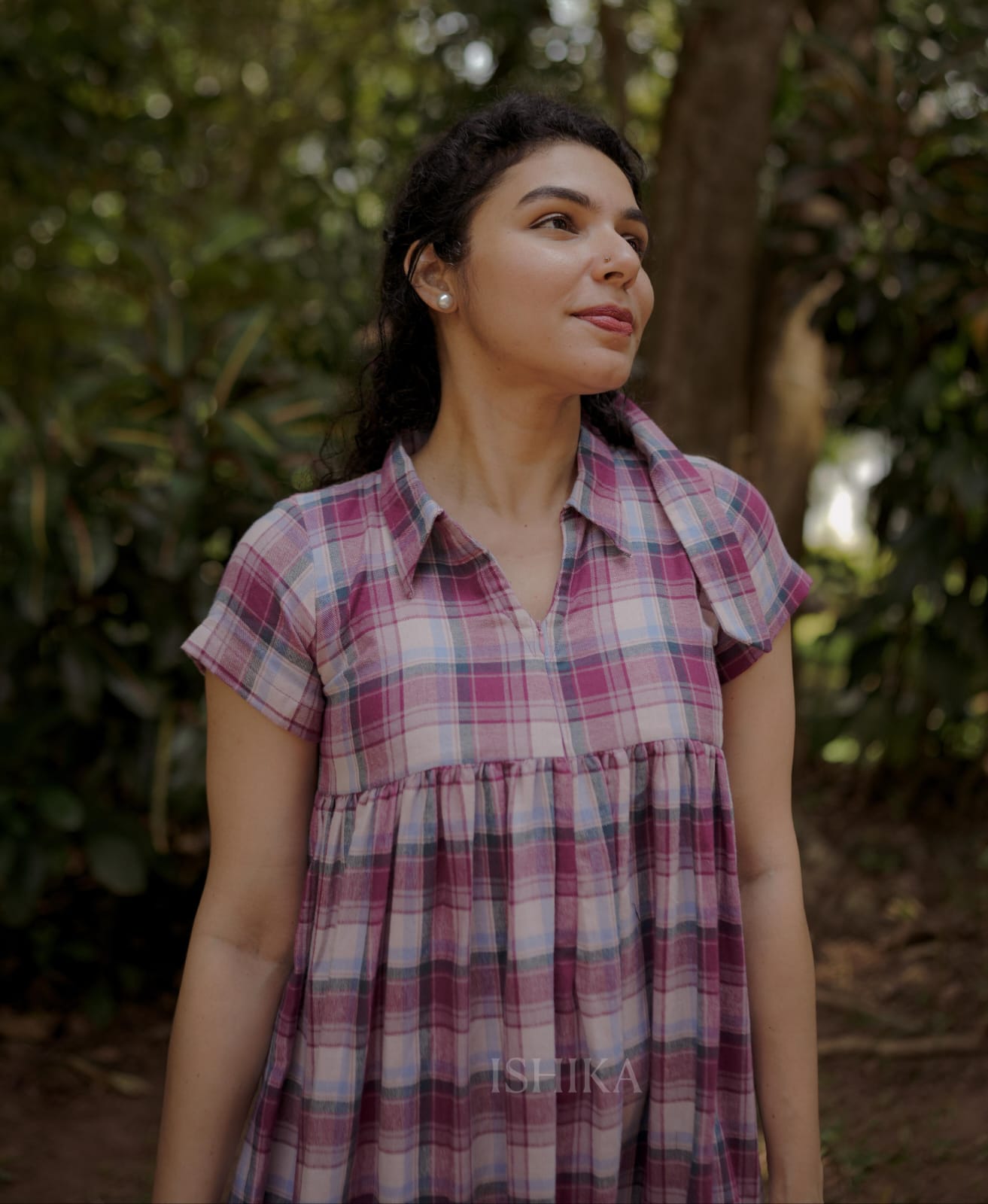 Color:- Plum and light pink with hints of dark greyish blue and soft blue