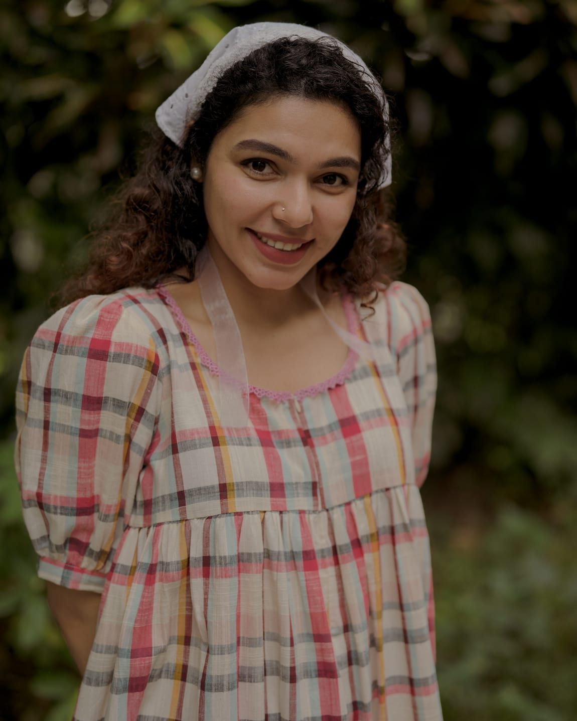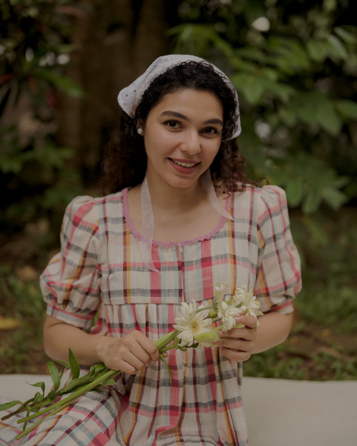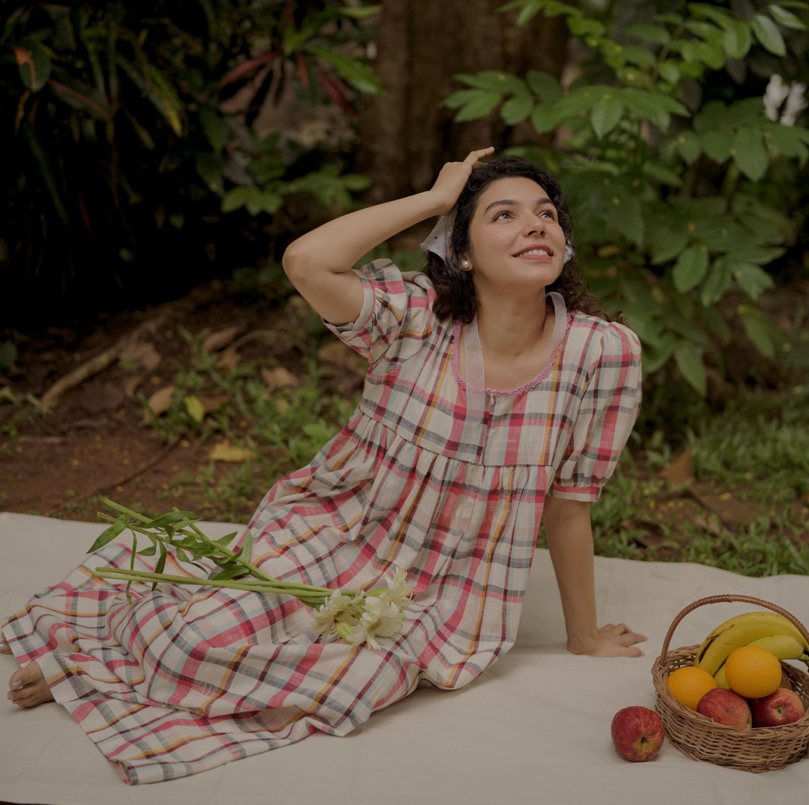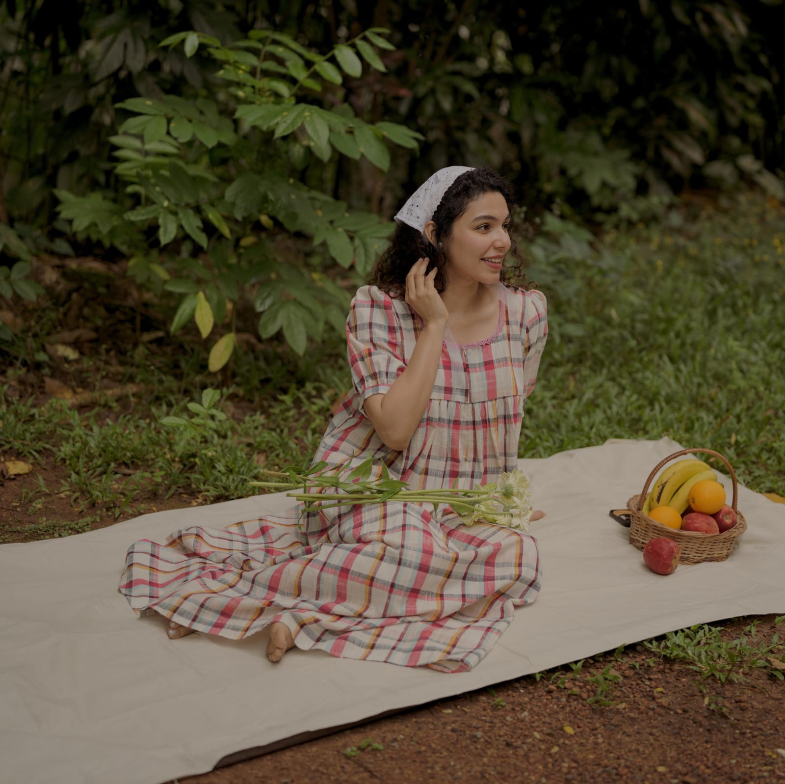 Color:- Off-white as the base, with lines of red, pink, yellow, blue, and gray.