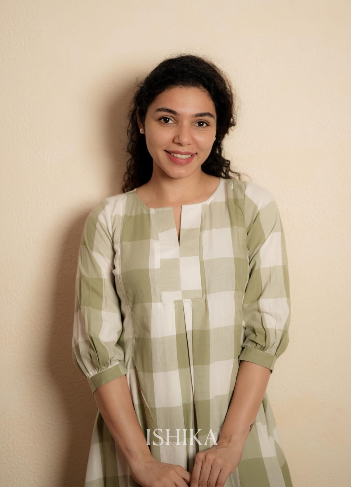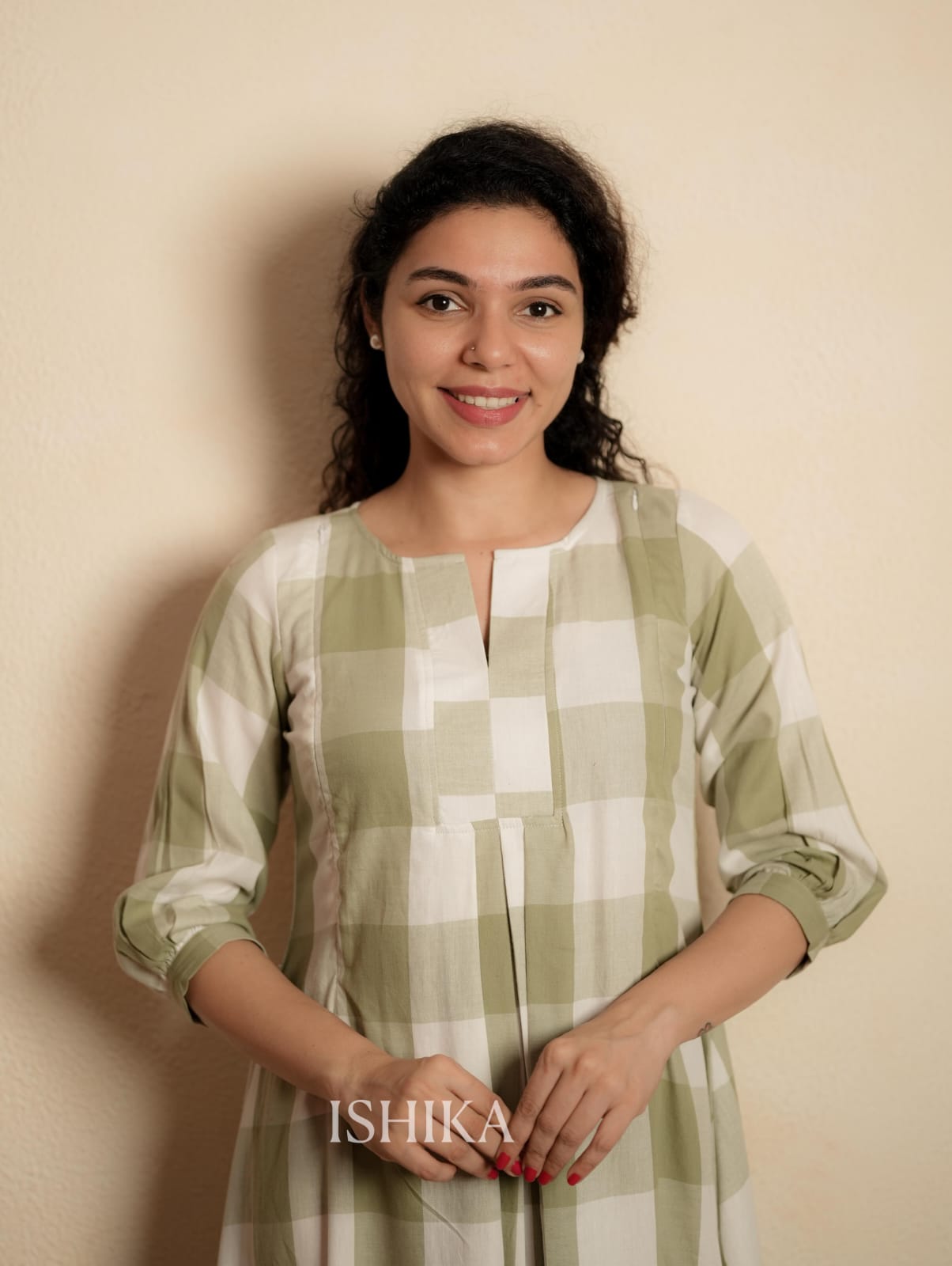 Color:- Olive Green and White Checks