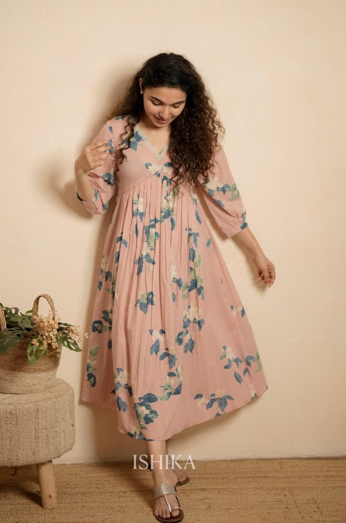 Color :- Peachy Pink with Floral Prints
