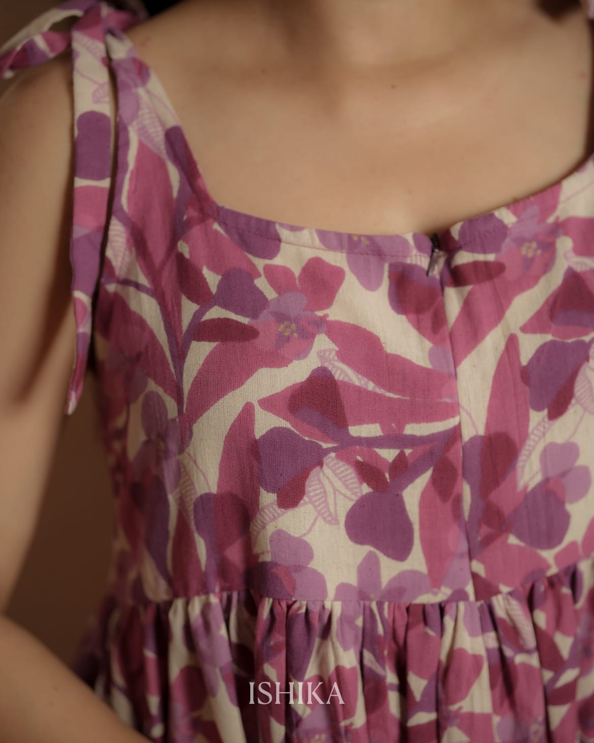 Printed Cotton Kurthi with Square Neck. Gathers on Yoke. Tie up straps on shoulder. Feeding Zip Placed on the yoke. (1 invisible Zip).