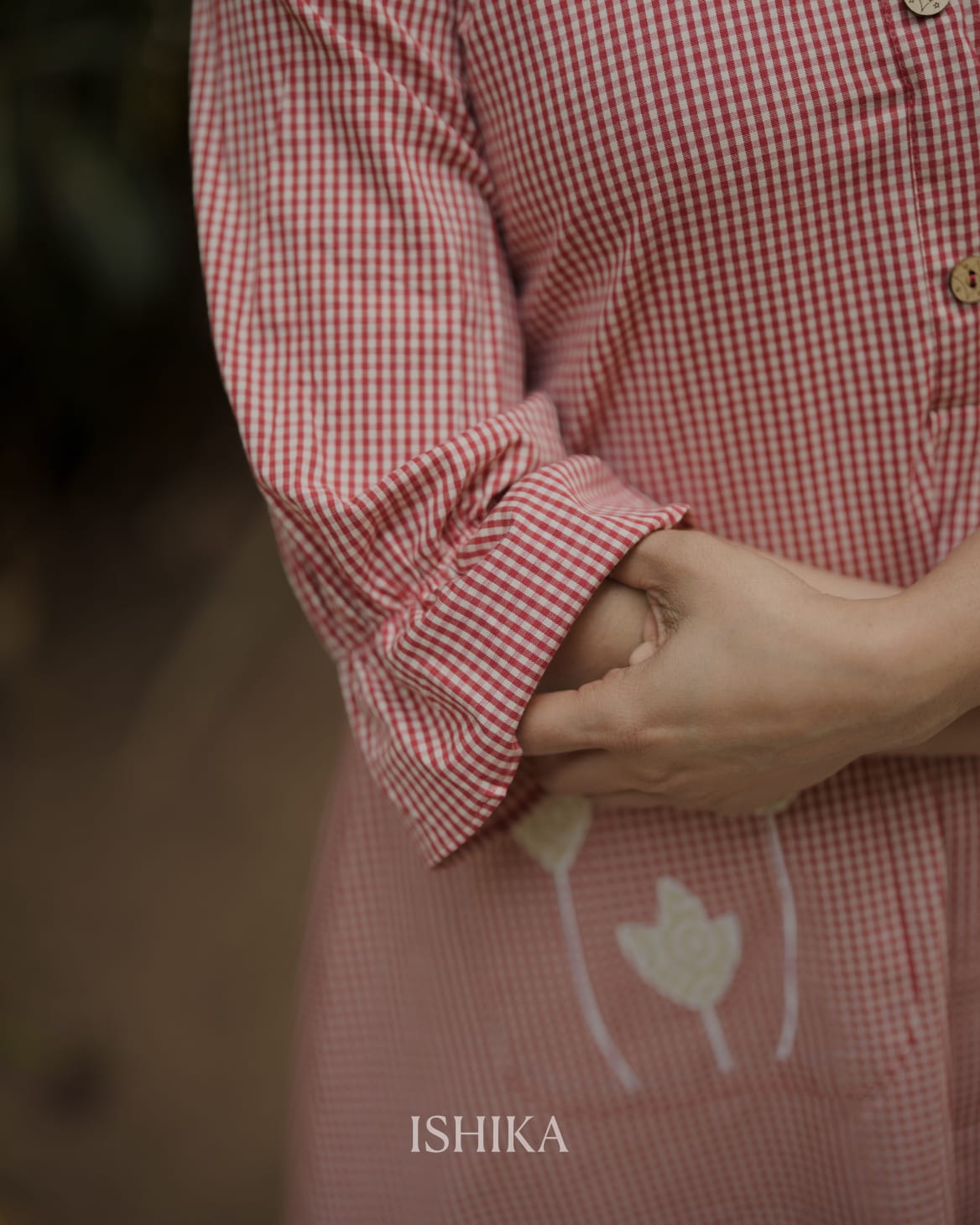 Color:- Red and white checks